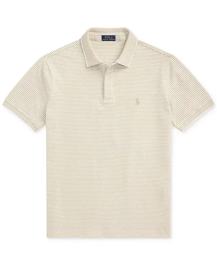 An American style standard since 1972, the Polo shirt has been imitated but never matched. Over the decades, Ralph Lauren has reimagined his signature style in a wide array of colors and fits, yet all retain the quality and attention to detail of the iconic original. This version includes a hint of stretch and is finished with genuine mother-of-pearl buttons. Approx. model height is 6'1" and he is wearing a size medium Classic Fit: cut fuller through the chest, waist, and sleeve, with a lower armhole that falls closer to the elbow Size medium has an approx. 29" body length Ribbed Polo collar with contrast tipping Concealed three-button placket; genuine mother-of-pearl buttons Short sleeves Contrast tipping at the ribbed armbands Even vented hem Signature embroidered Pony at the left chest Shell: cotton/elastane; trim: cotton Machine washable Imported