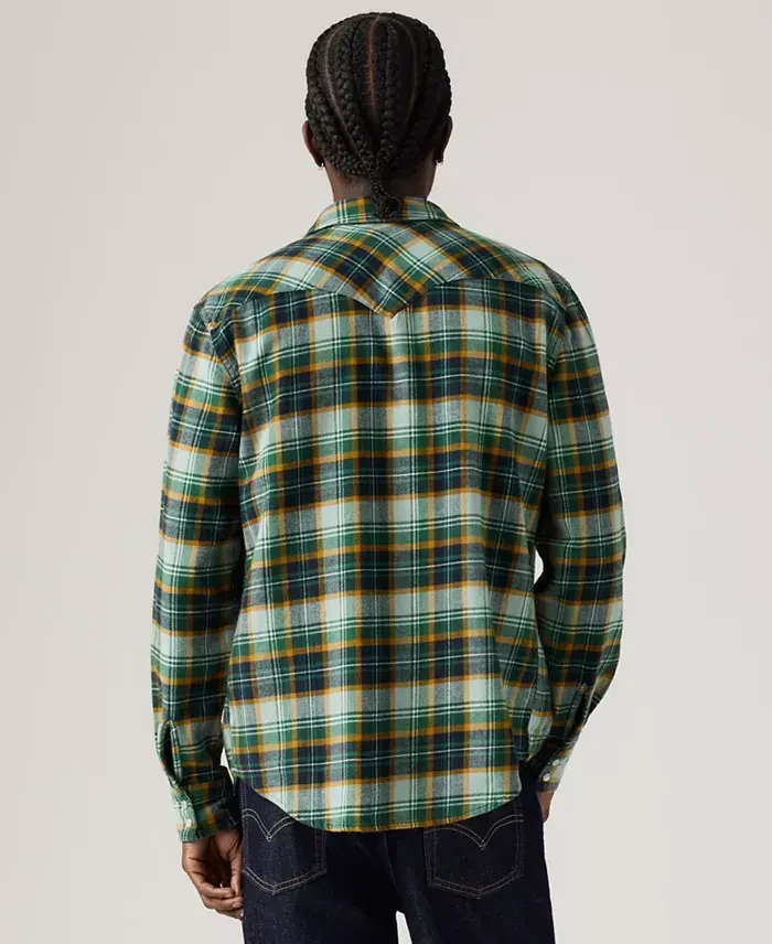 True to the classic, this essential shirt features a distinctive snap placket, pointed yoke and curved hem. Pair it with your favorite blue jeans for the iconic denim-on-denim look, or size up and wear like a jacket, there are no rules in the wild west. Point collar; button closure Non-stretch Two snap pockets at chest Slightly roomier cut Classic fit All cotton Machine washable Imported