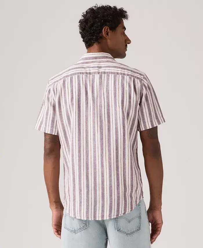 This classic shirt may be collared, but it is far from stuffy. Wear it button up with your some chinos, a leather belt and oxford shoes. Or ignore the buttons altogether and wear it open, layered over your favorite T-shirt. There is no wrong way to wear this timeless staple. Type of neckline or collar: point collar; closure: front button placket Cut with a slightly roomier silhouette Sleeve length: short sleeves Single pocket at the chest Curved shirttail hem Type of fit: regular fit 100% cotton Machine wash Imported