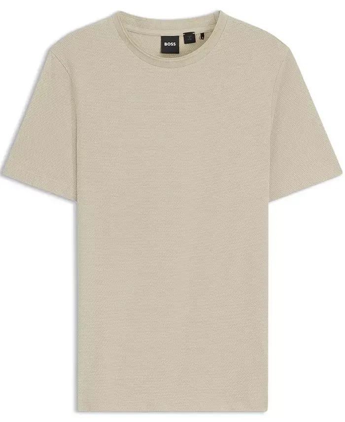 A crew-neck T-shirt by BOSS menswear, featuring a bubble structure created with a jacquard technique. Styled with a regular fit, this short-sleeved piece is crafted in a cotton blend and simply detailed with a ribbed-cotton collar and a logo flag at the side seam. The model wears a size M and is 6' 2" tall, with a 37" chest, 29" waist and 35" hips Regular fit Crew neck Short sleeves Standard length Closure: Slip on 75% cotton, 25% polyester Machine wash Imported