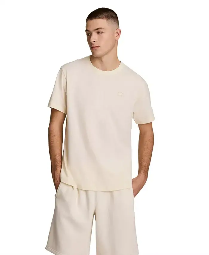 Get classic comfort and dependable durability with this cotton T-shirt from Champion. Classic fit Crewneck is mini-ribbed to help it keep its shape; pullover Shoulder-to-shoulder taping helps curb stretching and ripping Cuffs, hem reinforced with double stitching Tag-free 100% cotton Machine wash Imported