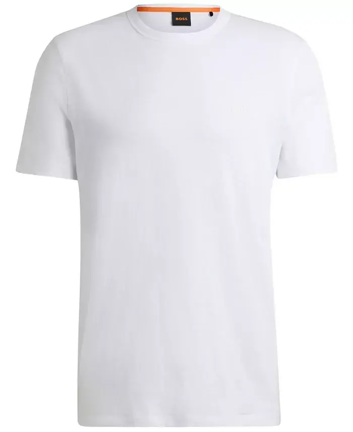 Trimmed with a subtle logo, this BOSS Menswear T-shirt comes in soft cotton slub jersey for effortless casual appeal. Easy regular fit. Collar binding detail. The model wears a size M and is 6'1" tall with a, 36" chest, 29" waist and 36" hips Regular fit Crew neck Short sleeves Standard length Closure: Slip on 100% cotton Machine wash Imported