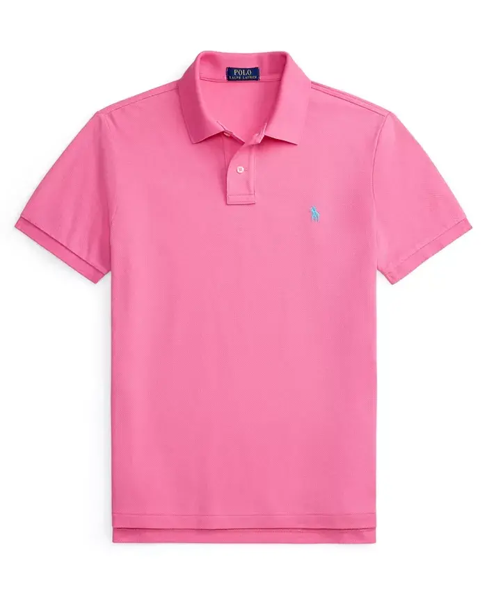 An American style standard since 1972, the Polo shirt has been imitated but never matched. Over the decades, Ralph Lauren has reimagined his signature style in a wide array of colors and fits, yet all retain the quality and attention to detail of the iconic original. Polo Ralph Lauren's trim version is made from highly breathable cotton mesh, which offers a textured look and a soft feel. Approx. model height is 6'1" and he is wearing size medium Size medium has a 27" front body length and a 28" back body length. Custom slim-fit: the trimmest silhouette. Polo Ralph Lauren's Polo shirts also come in Classic Fit (the roomiest). Ribbed Polo collar Two-button placket Short sleeves with ribbed armbands Tennis tail Ralph Lauren's signature embroidered pony accents the left chest; color may vary A timeless gift for your next occasion. 100% cotton Machine wash Imported