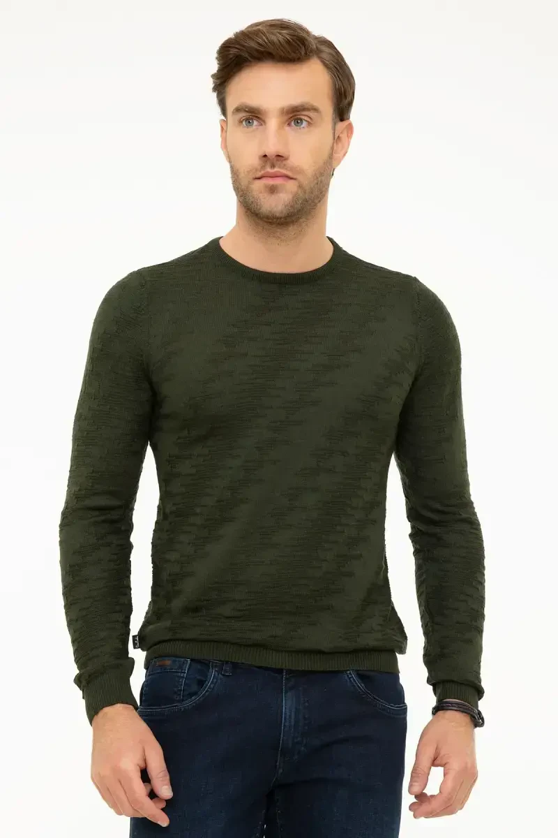 Men's Dark Green Slim Fit Crew Neck Knit Sweater G021GL0TK.000.867143-Dark Green