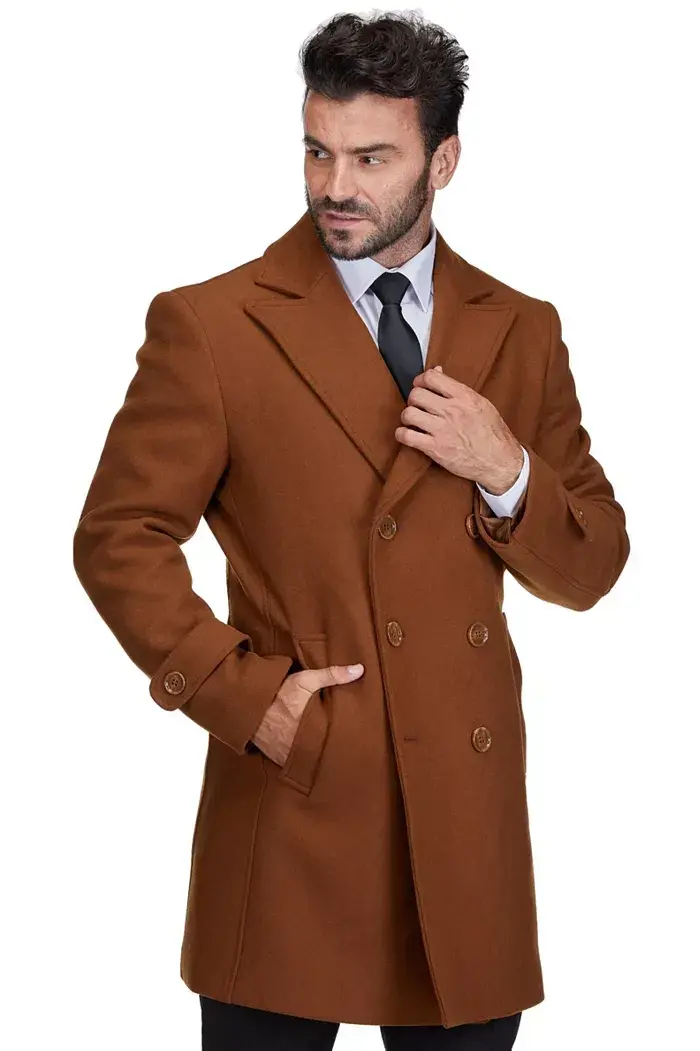 A wool coat is a must-have in any guy's wardrobe, and you can't go wrong with a classic pea coat. This pea coat is a tailored piece that is incredibly versatile. Wear it in chilly fall weather with a sweater or in the early spring with a t-shirt, it will be a go-to staple in your closet. Model's Height 6'2" Weight 170 lbs. Model is Wearing a Size Small. Front Button Closure, Fully lined. Soft, high quality wool blend Two side pockets, stitches need to be cut open with scissors (sewn shut for shipping purposes) Dry Clean Only, Materials: 35% wool, 45% polyester, 5% nylon, 15% other. 35% wool, 45% polyester, 5% nylon, 15% other Dry clean Imported