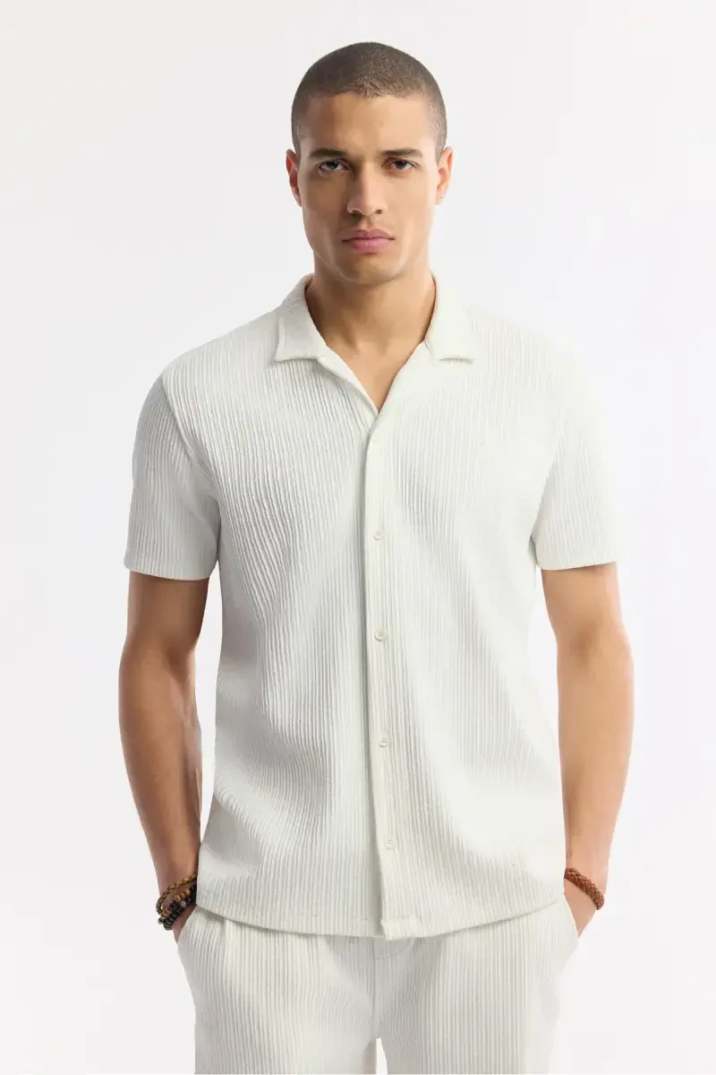 Men's Ecru Regular Fit Jacquard Stand Collar Short Sleeve Shirt is an ideal choice for men who don't want to compromise on style in hot weather. Thanks to its cotton fabric, it offers comfort all day long, while its jacquard pattern provides a striking look. The stand collar detail adds a modern touch to the shirt, while the short-sleeved design makes it an indispensable part of summer. The regular fit cut fits the body perfectly and does not restrict freedom of movement. This shirt, which can be preferred for both daily use and special occasions, is a candidate to be one of the most loved pieces of your wardrobe.Product DescriptionMen's Ecru Regular Fit Jacquard Stand Collar Short Sleeve Shirt is a candidate to be an indispensable part of the summer wardrobes of stylish men. This special design combines both elegance and comfort, allowing you to achieve a comfortable and original style even in hot weather. The elegant tone of ecru color blends perfectly with all kinds of combinations, while the jacquard pattern adds a sophisticated touch to the shirt. The stand collar detail departs from classic shirt designs and offers a modern look, while its short-sleeved structure offers an ideal solution against the heat of summer. The regular fit cut provides all-day comfort by creating a perfect silhouette that is neither too tight nor too loose on the body. This shirt is not only a perfect option for daily use, but also for special invitations and stylish events. The quality of its fabric and the care in its workmanship promise a long-lasting use, while its easy-to-iron feature offers a practical use. This shirt, which will be the savior of your wardrobe, can be easily combined with trousers, shorts and jackets in different colors and patterns. Whether you adopt a sporty style or want to create a more classic look, this shirt will adapt to every style and help you reflect your style in the best way. Designed for self-caring and stylish men, this shirt is not just a piece of clothing, but also a form of expression. Men's Ecru Regular Fit Jacquard Stand Collar Short Sleeve Shirt, which is a perfect choice for those who seek elegance and comfort together, will be one of the most valuable pieces of your wardrobe.Product Features* Color: Ecru* Fit: Regular Fit* Collar Type: Stand Collar* Sleeve Type: Short Sleeve* Pattern: Jacquard* Fabric: Cotton* Usage Area: Daily and Special Occasions* Season: Spring/Summer* Style: Modern and Stylish* Easy Iron FabricAdditional InformationModel's size on: M. Product content: 100% Cotton. Washing Instructions: Should be washed according to the instructions on the label. Colored and whites should be washed separately. Bleach should not be used. Should be ironed at low temperature.