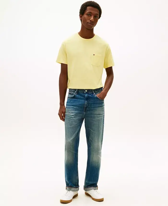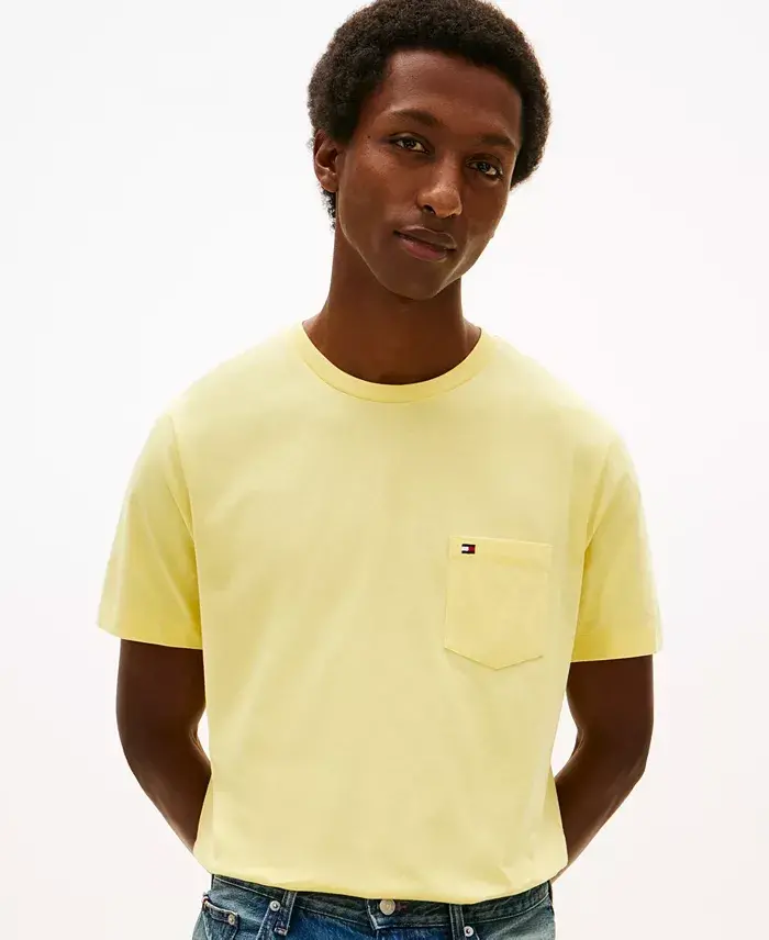 Tommy Hilfiger's pocket T-shirt exudes relaxed appeal with its neat cut and vibrant solid pattern. Perfect for casual wear, it effortlessly combines comfort and style. Regular Fit Crewneck Pullover closure Short sleeves Logo at pocket Pocket at left chest All cotton Machine washable Imported