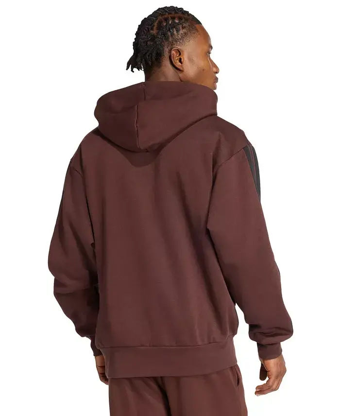 Men's Essential Three Stripes Fleece Hoodie - Shadow Brown/Black