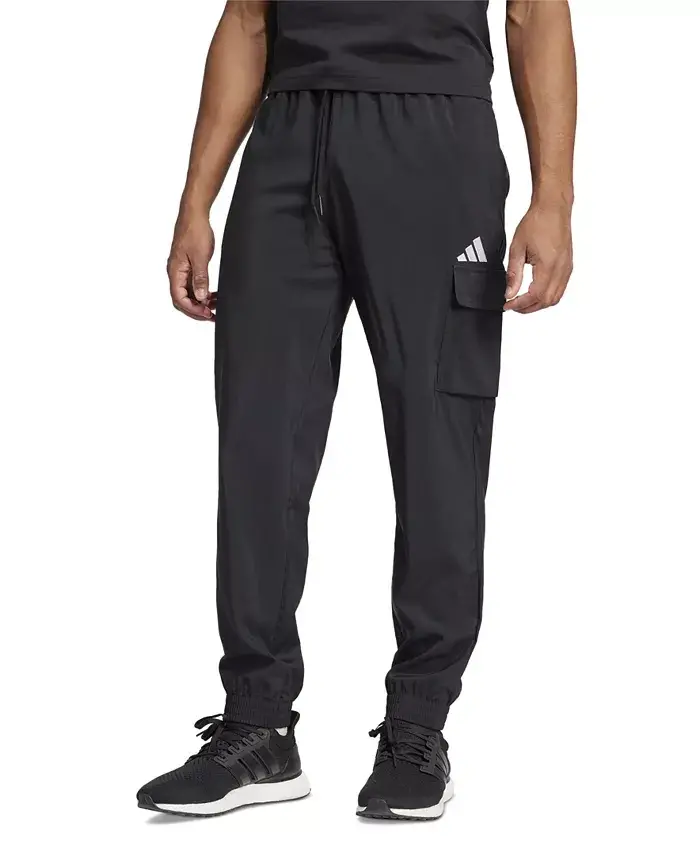 Cargo pants, men's, cotton, relaxed fit, gathered hem, cargo pockets, logo detail, everyday wear, men's clothing, Men's Essentials