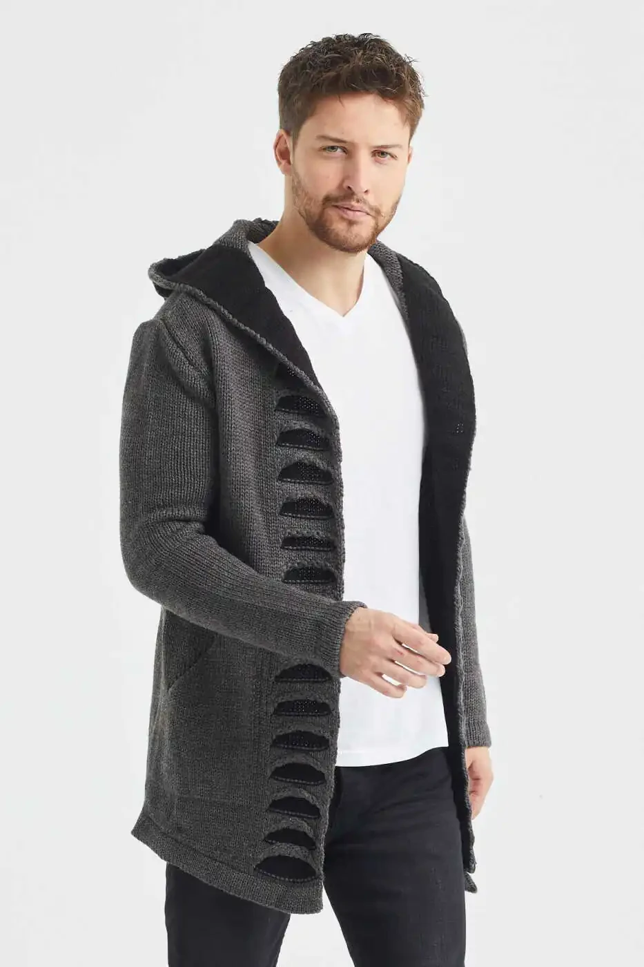 Combining style and comfort, the Men's Charcoal Patterned Poncho Knit Cardigan will be an indispensable part of your wardrobe. Made of soft and high-quality knitted fabric, the cardigan's elegant charcoal pattern offers a modern look that will suit every style.