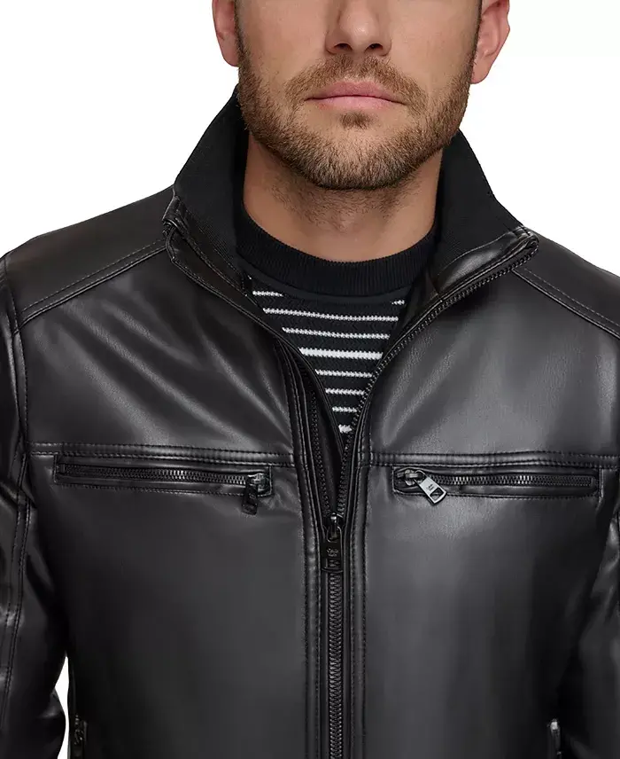 Men's Faux Leather Moto Jacket, Created for Modazone - Black