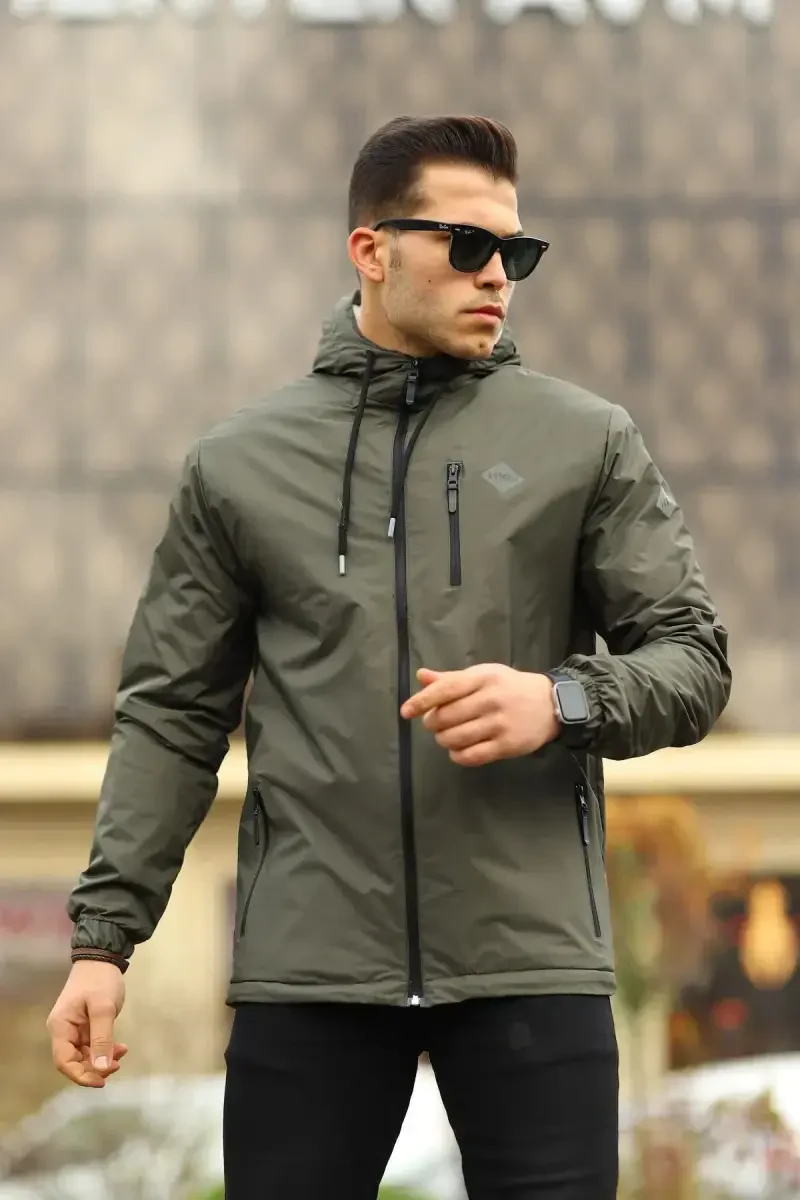 Men's Fur-Lined Waterproof Hooded Pocket Raincoat - Khaki | Best Price