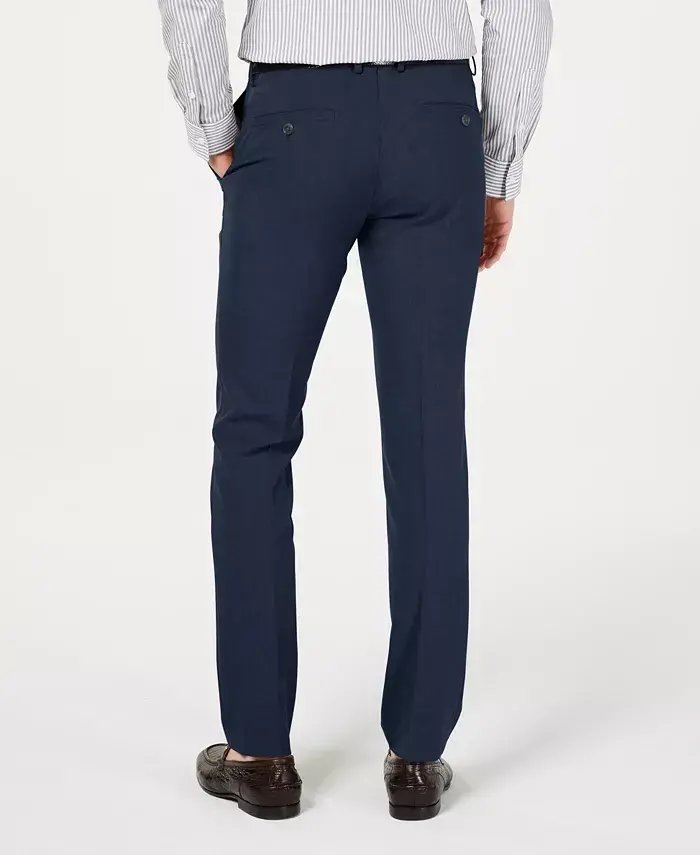 Kenneth Cole Reaction Men's Gabardine Skinny/Extra-Slim Fit Performance Stretch Flat-Front Dress Pants - Moviy, ish hayotida va maxsus kunlarda shıkligingizni to'ldiradigan mukammal tanlovdir. Elastik matosi tufayli kun bo'yi qulaylik taqdim etadi. Zamonaviy kesimi bilan uslubingizni oldinga chiqaradi. Mashinada yuvish mumkin bo'lgan xususiyati tufayli osongina tozalanadi. Garderobingizning ajralmas qismi bo'lishga da'vogardir.