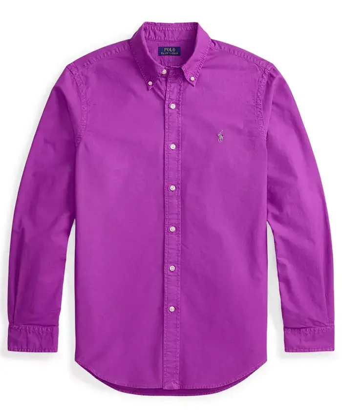 Garment-dyed and washed, Polo Ralph Lauren's cotton shirt offers a broken-in look and feel from day one. Approx. model height is 6'1" and he is wearing a size medium Size medium is approx. 31-½" long Classic fit: our roomiest silhouette Button-down point collar; buttoned placket Cut for a lower armhole and a fuller sleeve Long sleeves with buttoned barrel cuffs Split pleated back yoke ensures smooth, contoured shoulders Signature embroidered pony at the left chest A timeless gift for your next occasion. 100% cotton Machine wash Imported