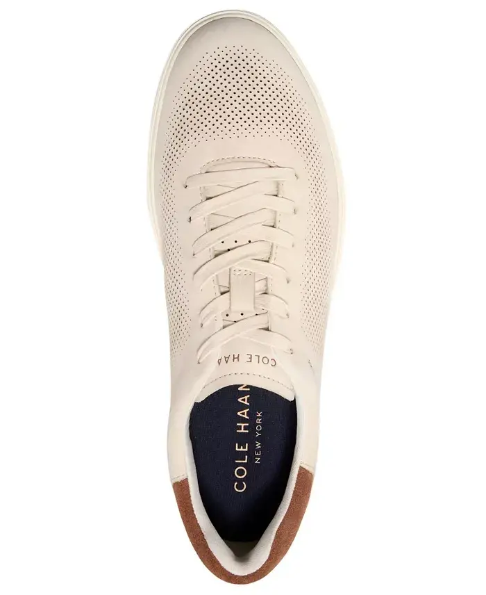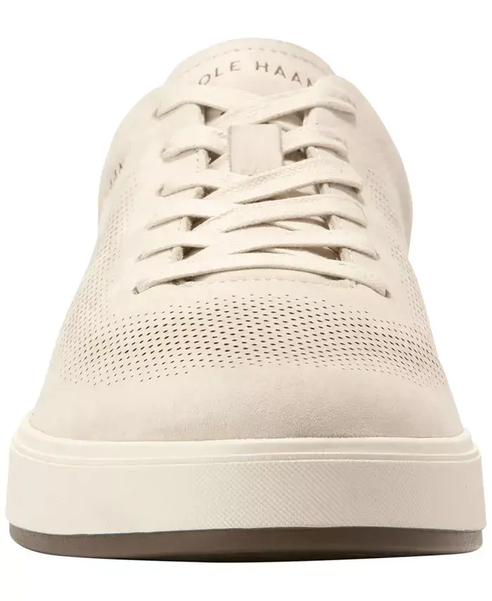 Cole Haan's GrandPrø Angleace Sneaker lends the best of both worlds: a minimalist design comprised of premium mixed materials and ultra-fine, laser-cut perforations. What's more is that this pair features GRANDFØAM™ cushioning and a durable rubber outsole for long-lasting comfort from 9-5 and 5-9. Round toe Lace-up Padded collar; GRANDFØAM™ cushioning; foam footbed Flexible and durable rubber sole Blind eyelets; brand detailing on sockliner, outsole, tongue Perforated leather or nubuck leather upper; polyester lining; rubber sole Imported