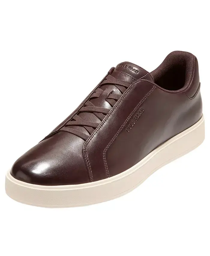 Cole Haan created the GrandPrø Luxe Slip-On Sneaker as a low-silhouette court shoe that comes with front and back pull tabs as well as laces. Why? Because they know you'll want an easy on/easy off option so you can wear them all the time. Round toe Slip-on with adjustable stretch laces Padded collar; brand detailing on sockliner, outsole; rubber cup sole; fully padded foam footbed Flexible and durable rubber sole Suede or nubuck leather upper finish Leather upper; 80% synthetic, 20% leather lining; rubber sole Imported