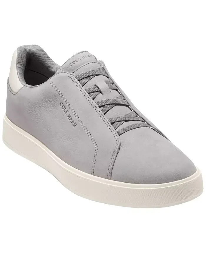Cole Haan created the GrandPrø Luxe Slip-On Sneaker as a low-silhouette court shoe that comes with front and back pull tabs as well as laces. Why? Because they know you'll want an easy on/easy off option so you can wear them all the time. Round toe Slip-on with adjustable stretch laces Padded collar; brand detailing on sockliner, outsole; rubber cup sole; fully padded foam footbed Flexible and durable rubber sole Suede or nubuck leather upper finish Leather upper; 80% synthetic, 20% leather lining; rubber sole Imported