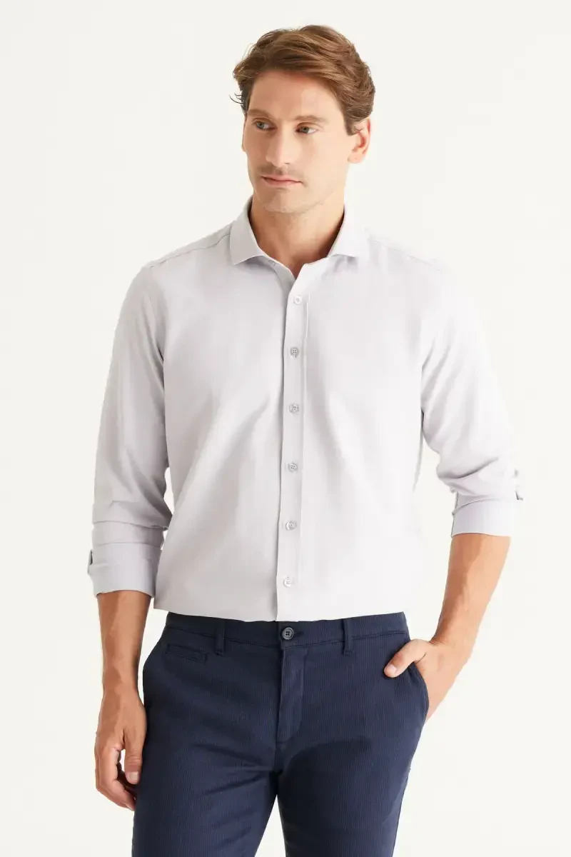Refresh your wardrobe with the Altınyıldız Classics Men's Grey Easy Iron Slim Fit Narrow Cut Italian Collar Textured Shirt. Offering a classic and stylish look, this shirt fits your body perfectly thanks to its slim fit cut and creates a modern silhouette. This shirt, which you can easily prefer in any environment, has a wide range of uses from business meetings to special invitations. The long-sleeved design provides ideal comfort during seasonal transitions, while its woven fabric structure highlights durability and breathability. The textured pattern adds a sophisticated and contemporary touch to the shirt, while the Italian collar detail completes your elegance. The buttoned closure makes it easy to put on and take off the shirt, while it remains in your wardrobe for many years as a timeless piece of the basic collection. Made from a blend of 60% cotton and 40% polyester, this shirt offers softness and durability together. Thanks to its cotton content, it gently touches your skin and provides comfort all day long. The polyester content makes the shirt more resistant to wrinkles and supports easy ironing. This helps you to always look well-groomed and stylish. The tulle weave type adds a light and elegant touch to the shirt. Pocket details combine functionality and aesthetics, offering a useful design. Appealing to all age groups, this shirt will be indispensable for stylish men. The gray color allows you to make different combinations, while the slim fit cut allows you to achieve a modern look. Whether you combine it with a suit or create a casual style, this shirt will always highlight your elegance. Produced with Altınyıldız Classics quality, this shirt offers long-lasting use and becomes one of the indispensable pieces of your wardrobe. Thanks to its easy-to-iron feature, it saves you time and helps you to always look well-groomed. Attract attention in any environment with this shirt that offers style and comfort together.