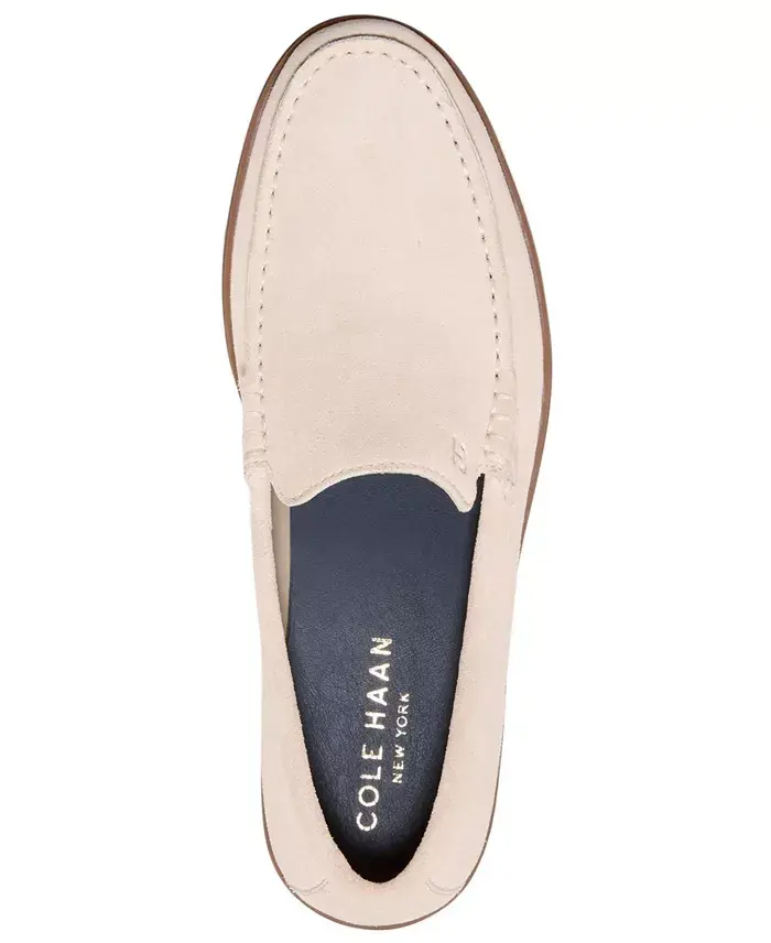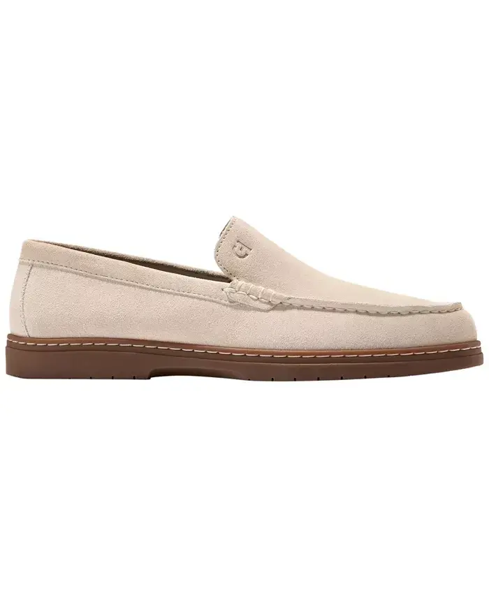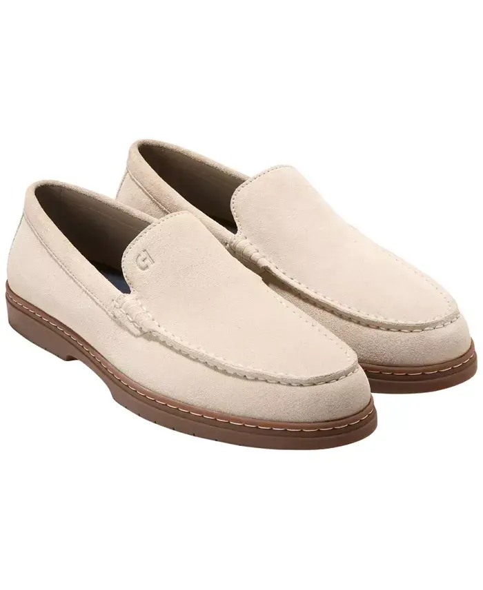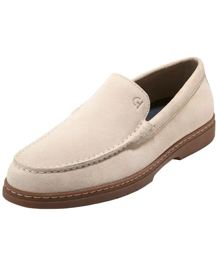 Streamlined for any occasion, these Greenwich Grand Venetian loafers from Cole Haan have refined suede uppers and the comfort of your favorite sneakers. Round moc toe Slip on Flexible rubber sole with flex grooves for ultimate comfort; EVA footbed; cushioned insole Padded collar; logo detailing at tongue, footbed and sole Upper: suede; lining: polyester; sole: rubber Spot clean only Imported