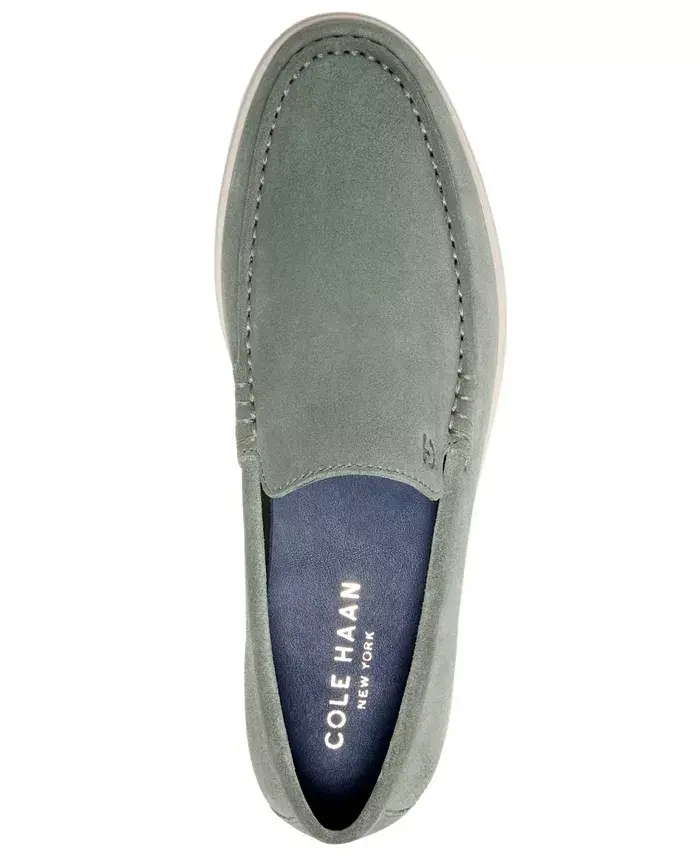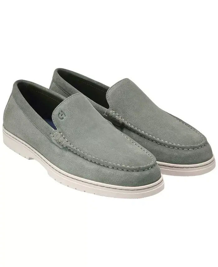 Streamlined for any occasion, these Greenwich Grand Venetian loafers from Cole Haan have refined suede uppers and the comfort of your favorite sneakers. Round moc toe Slip on Flexible rubber sole with flex grooves for ultimate comfort; EVA footbed; cushioned insole Padded collar; logo detailing at tongue, footbed and sole Upper: suede; lining: polyester; sole: rubber Spot clean only Imported