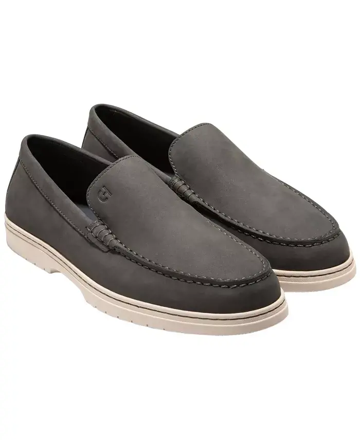 Streamlined for any occasion, these Greenwich Grand Venetian loafers from Cole Haan have refined suede uppers and the comfort of your favorite sneakers. Round moc toe Slip on Flexible rubber sole with flex grooves for ultimate comfort; EVA footbed; cushioned insole Padded collar; logo detailing at tongue, footbed and sole Upper: suede; lining: polyester; sole: rubber Spot clean only Imported