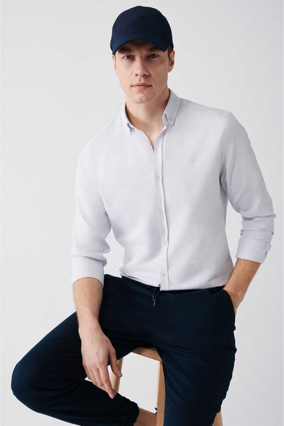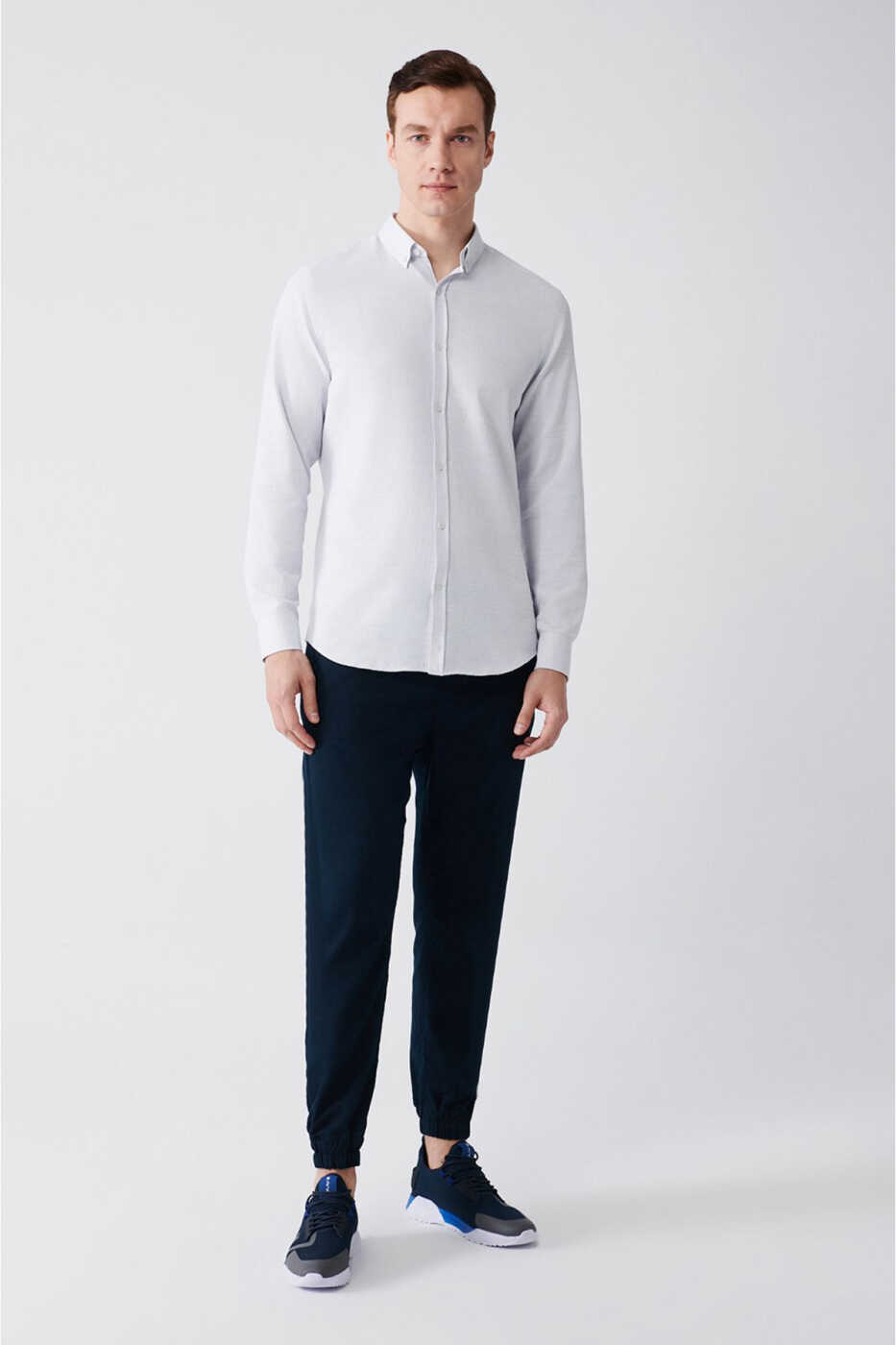 Reflect your style in every setting with the Men's Grey Button-Down Collar Soft Flamed Cotton Slim Fit Fitted Shirt A31y2015, combining elegance and comfort. This shirt, offering all-day comfort with its soft texture and breathable fabric, allows you to achieve a stylish look for special occasions and everyday life.
