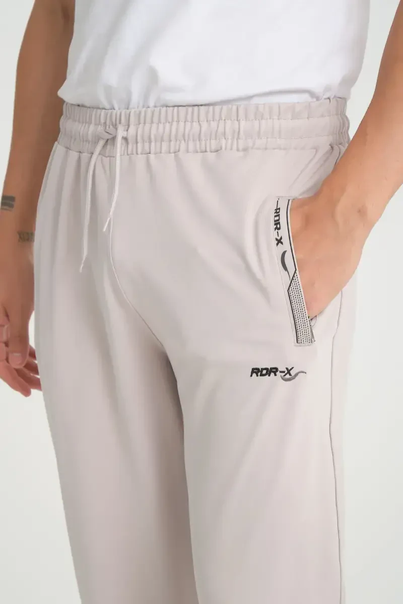 Men's Grey Detailed Relaxed Fit Straight Leg Scuba Fabric Sweatpants-Grey