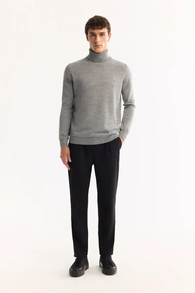 Combining style and comfort, the Men's Gray Knit Sweater is the perfect choice for keeping you warm and completing your look in the winter months. With its soft texture and fisherman neck, the sweater offers a comfortable feel, ideal for your everyday outfits. Its wool construction keeps you warm from the cold weather, while its regular fit design provides a perfect fit for your body.
