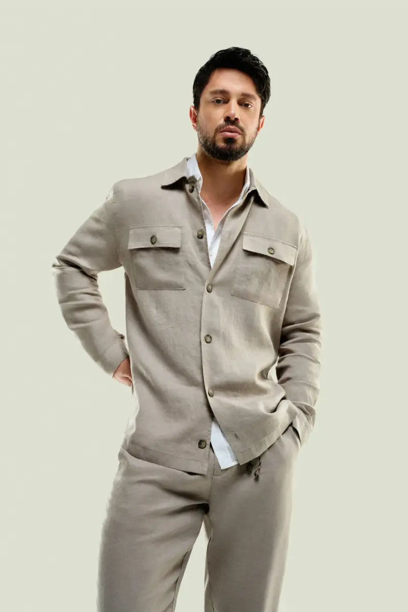 To complete your style, you can combine the Men's Grey Linen Jacket with a stylish pair of trousers, a white T-shirt and leather shoes.