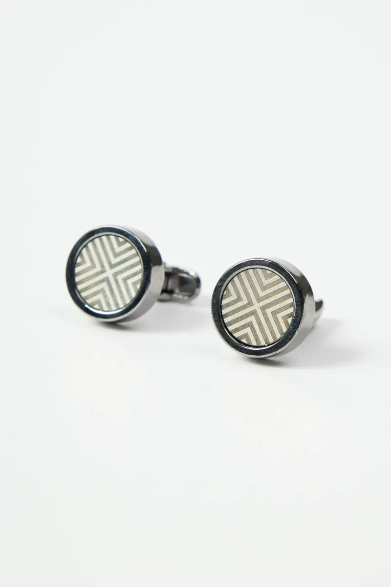 This metal cufflink, specially designed for men who feel style and elegance in every detail, offers a unique gift option. This cufflink, prepared with the perfect harmony of grey and white, draws attention with its eye-catching design and is presented in a special box.