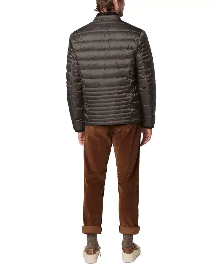 The Men's Grymes Packable Racer Jacket is the perfect companion for your weekend getaways, combining the signature elegance and practicality of Marc New York. This lightweight and packable jacket protects you from unexpected weather conditions while ensuring you don't compromise on style. With its modern design, waterproof feature, and handy pockets, it ensures you're ready for any adventure. Whether you're strolling around the city or going for a nature walk, this jacket offers comfort and confidence. The Grymes Packable Racer Jacket will be an indispensable part of your wardrobe.The jacket's stylish quilted details give it a sophisticated look, while the two diagonal zippered chest pockets are ideal for safely storing your belongings. The jacket's lightweight construction does not restrict your freedom of movement and can be easily folded and carried. This provides great convenience on your travels or in daily use. The ideal length of 27 inches fits your body perfectly and creates a modern silhouette. Thanks to its waterproof feature, you can stay dry and comfortable even in rainy weather. The Men's Grymes Packable Racer Jacket is the perfect choice for men looking for both style and functionality. Whether for daily use or travel, this jacket will accompany you, ensuring you are always stylish and prepared.