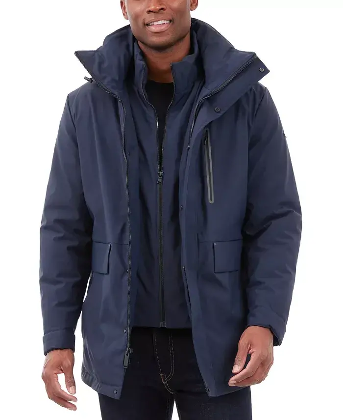 Stay safe and warm in cold weather with the Michael Kors Men's Heavyweight Hooded Parka Jacket. This parka combines style and functionality, making it a must-have for your winter wardrobe. Reflective elements on the pocket details and hood enhance your visibility in low-light conditions, prioritizing your safety. High-quality insulation keeps you comfortable by retaining your body heat even in the coldest weather. The regular fit allows for freedom of movement and comfortable wear. The full-length zippered collar and additional snap closure prevent cold air from entering, protecting you from wind and rain. The zippered bib detail on the inside creates an extra layer, further enhancing thermal insulation. Adjustable cuffs allow you to adjust your sleeves as desired, preventing cold air from seeping in. The parka features two flap pockets on the front and one zippered chest pocket. These pockets allow you to safely carry personal items such as your phone, keys, or wallet. The Michael Kors logo on the left sleeve emphasizes the parka's style and quality. Its waterproof feature keeps you dry even in rainy weather. This parka not only keeps you warm but also complements your style. Thanks to its modern and stylish design, you can easily prefer it for both daily use and special occasions. Whether you are strolling around the city or hiking in nature, this parka will always accompany you. Produced with Michael Kors quality, this parka will be a staple in your wardrobe for many years.