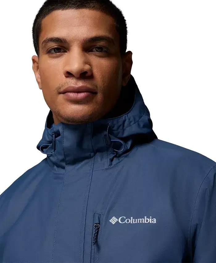 Don't let storms hold up your hikes. With the seam-sealed, waterproof-breathable protection of this Columbia men's jacket, you'll be readier than ever to trek on in the rain. Regular fit Hooded Zip closure Long sleeves Side pockets Logo at left chest Center Back Length: 29.0 in / 73.7 cm. Polyester Machine wash Imported