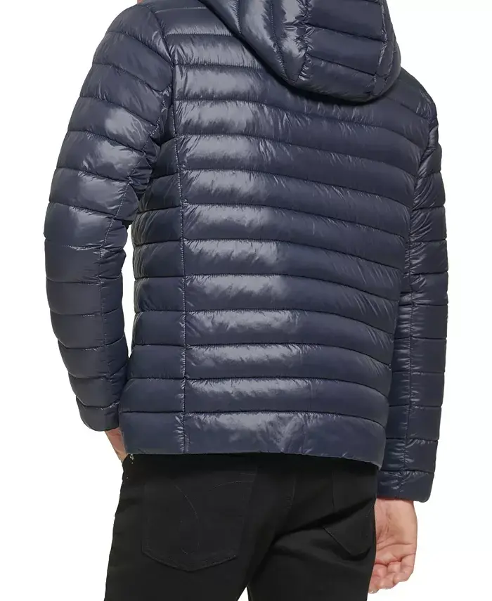 Be prepared for all weather conditions with the Men's Hooded & Quilted Packable Jacket-True Navy. This minimalist and stylish hooded jacket from Calvin Klein is the perfect choice to accompany you in cool weather and rain, whether it's a day trip or a long vacation. Its lightweight construction, waterproof feature, and packable design offer practical use, while its quilted body and modern lines ensure you always look stylish.The regular fit offers comfortable wear, while the full-length zippered front closure and long sleeves with elasticated cuffs keep the cold out. You can safely carry your belongings in the zippered pockets. The hooded design protects your head against sudden rain, while the elasticated drawstring detail ensures the hood fits snugly on your face.One of the most remarkable features of the jacket is its packable design. You can easily fold it into the special bag that comes with it and carry it in your bag or suitcase without taking up space. This feature provides great convenience, especially on travels or in regions with variable weather conditions.The waterproof surface keeps you dry even in light rain, and the Calvin Klein logo reflects the brand's quality and elegance. The soft elastic hem ensures the jacket fits snugly to your body and prevents cold air from entering.The Men's Hooded & Quilted Packable Jacket-True Navy is not only a functional outerwear product but also a must-have piece in the wardrobe of stylish men. This jacket, which will accompany you both in daily use and on travels, allows you to experience comfort without sacrificing your elegance. Whether you combine it with jeans or sports pants, you will always achieve a modern and cool look. Designed with Calvin Klein quality and elegance, this jacket will be an indispensable part of your wardrobe for many years.