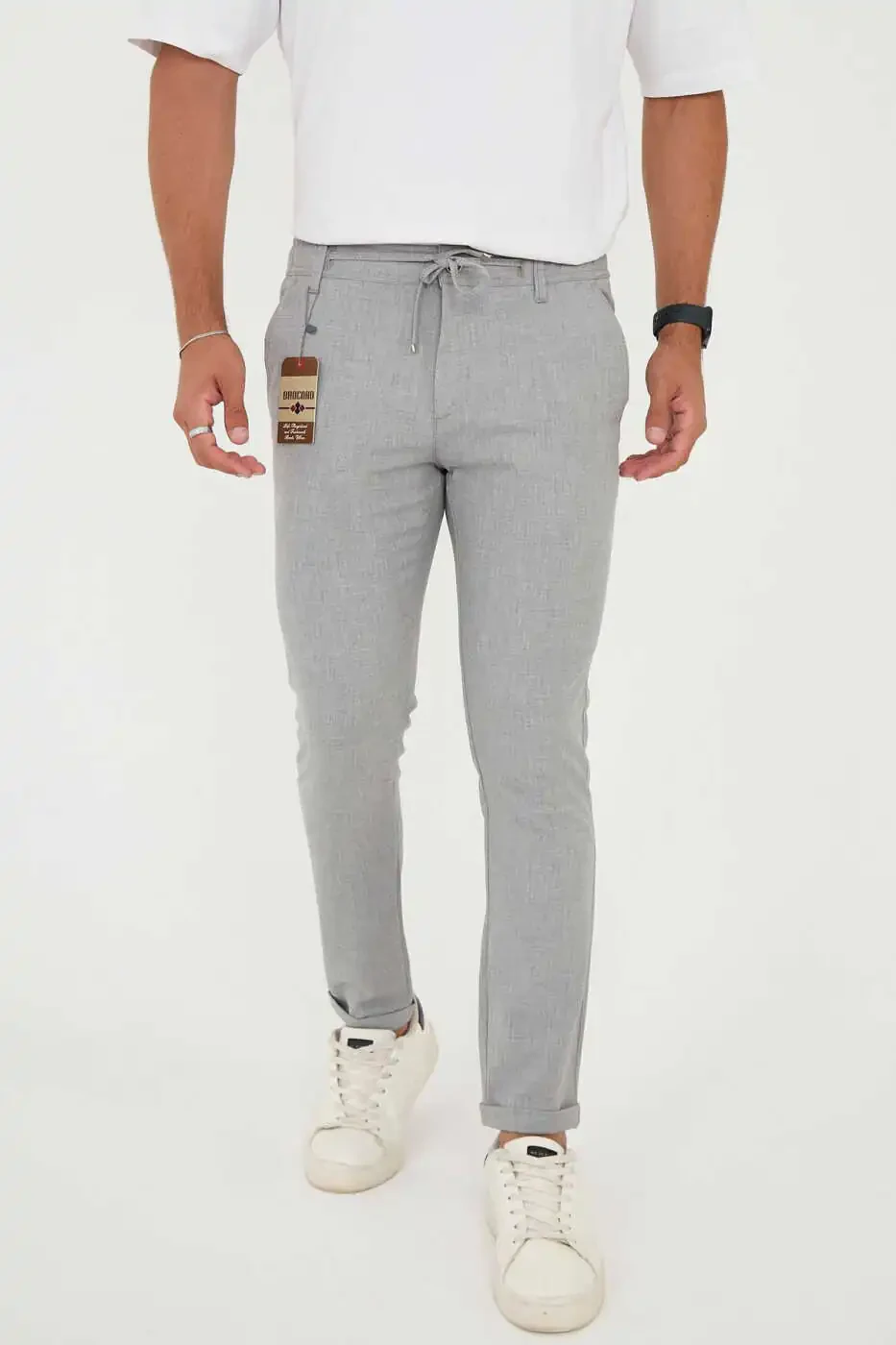 The Men's Jogger Slimfit Half Elastic Waist Double Cuff Grey Fabric Trousers is a perfect choice to add style and comfort to your everyday look.