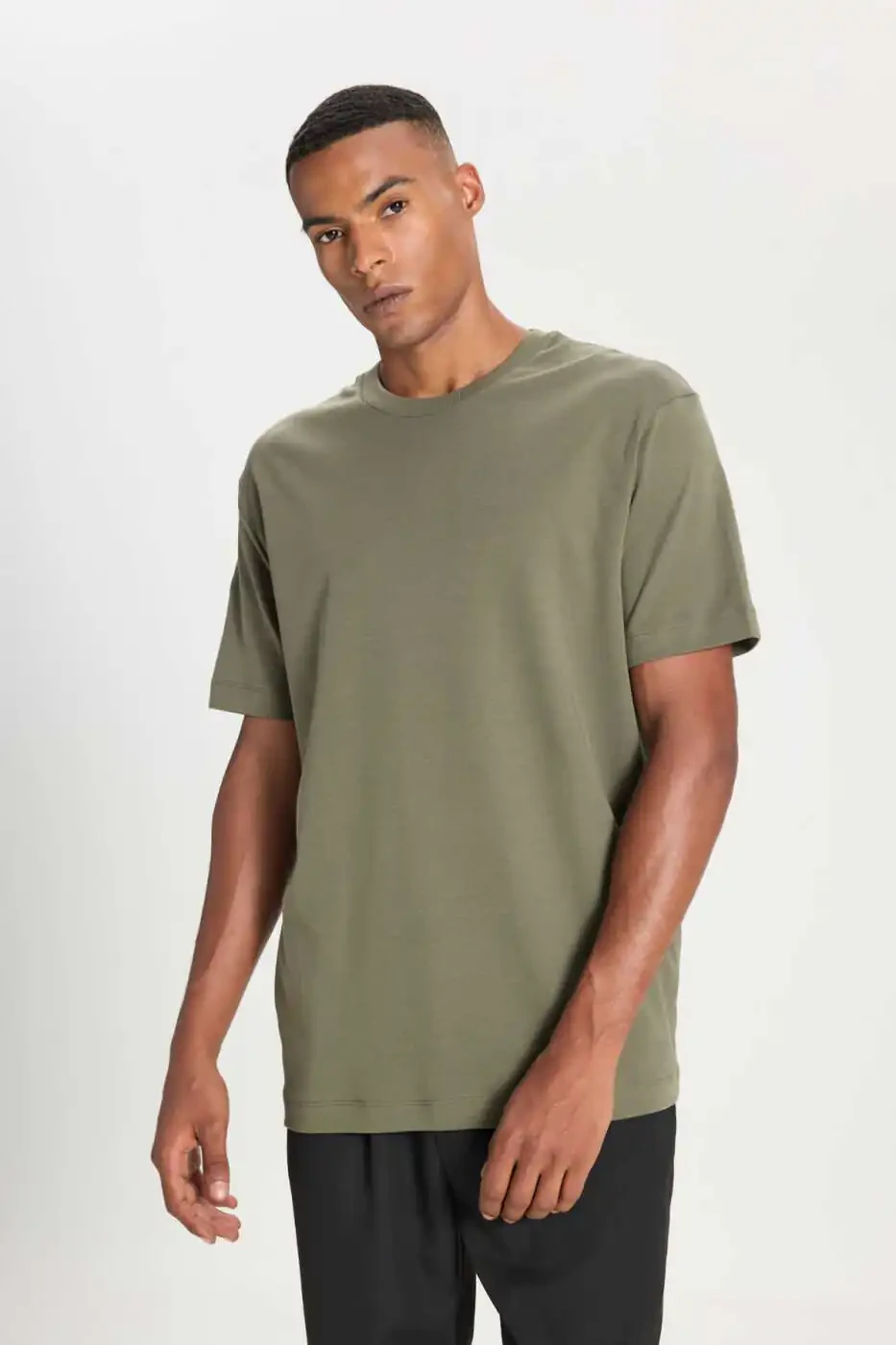 The Men's Khaki 100% Cotton Modern Fit Regular Fit Crew Neck T-Shirt offered by Altınyıldız Classics is a candidate to be an indispensable part of your wardrobe. This t-shirt combines both elegance and comfort, allowing you to use it comfortably in any environment. The khaki color represents naturalness and modernity, while the 100% cotton content offers a breathable wearing experience all day long. The modern fit cut provides a stylish look by fitting the body perfectly, while the regular fit feature does not restrict your freedom of movement. The crew neck detail adds a modern and dynamic touch to the t-shirt. Thanks to its standard length, this t-shirt provides a perfect fit for all body types and offers a comfortable wearing experience. The regular fit provides comfortable use throughout the day, and it fits you perfectly without being too tight or too loose. The basic silhouette design offers a timeless elegance, allowing you to create different combinations. You can easily combine it with jeans, shorts or chino pants to always look stylish and well-groomed. The knitted fabric structure adds flexibility and durability to the t-shirt, offering long-lasting use. In this way, you can use your t-shirt like the first day for a long time. The crew neck cut provides a modern and stylish look and is ideal for daily use. The t-shirt has a wide range of users with its design that appeals to all age groups. Whether you are young or adult, this t-shirt will complement your style and give you confidence. Produced with the quality of Altınyıldız Classics, this t-shirt is a perfect choice for both daily use and special occasions. With this t-shirt that combines elegance and comfort, you can always be remarkable and stylish. It is in stock in limited quantities to be sold at a campaign price. Do not miss this opportunity and enrich your wardrobe with this stylish and useful t-shirt.