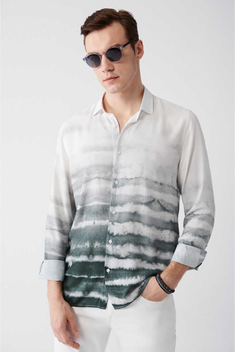 Combine style and comfort with the Men's Khaki Block Patterned Tril Shirt A21y2092!