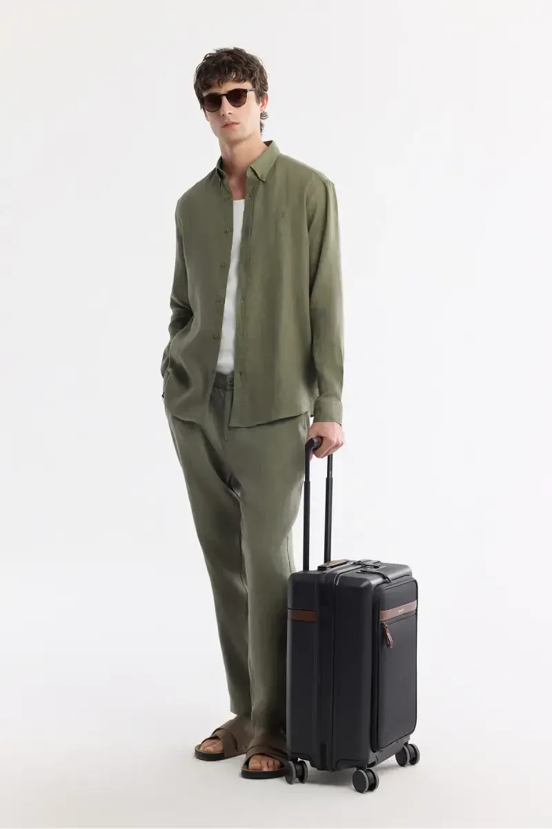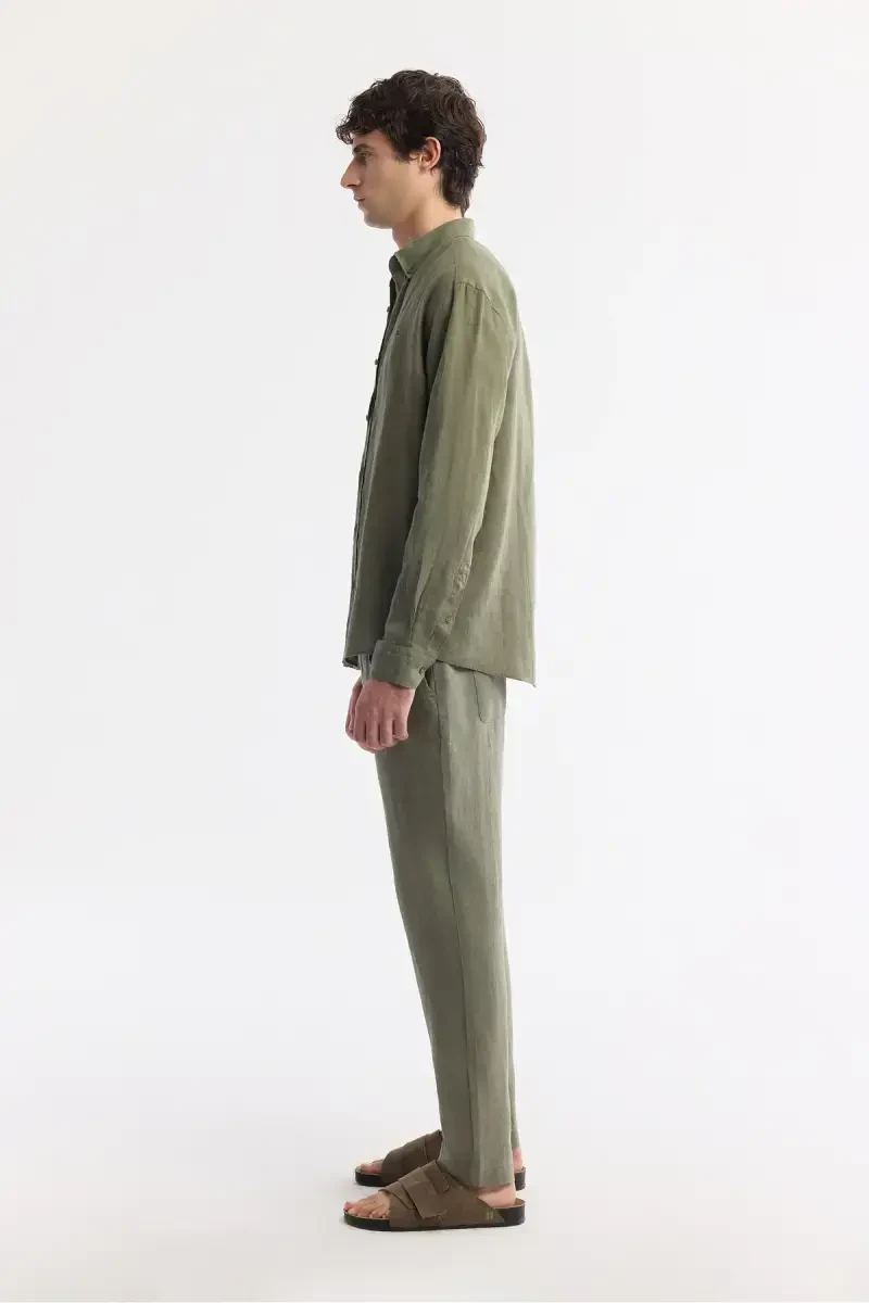 The Men's Khaki Comfort Fit 100% Linen Button-Down Collar Shirt B002191-Khaki is an ideal choice for men who want to maintain their style in warm weather. Offered with AVVA quality, this shirt provides breathability and coolness all day long thanks to its 100% linen fabric. The comfort fit cut offers comfortable use without restricting your freedom of movement, while the button-down collar detail combines a classic and modern look. The natural linen washed texture adds a unique softness and authentic feel to the shirt. This shirt is a perfect choice for both daily use and special occasions. It is ideal for achieving a stylish look in the office or creating a comfortable style on the weekend. The natural structure of linen allows the shirt to become softer with each wash and gain a personal touch. The long-sleeved design adapts to different weather conditions and allows you to create various combinations. You can combine it with stylish trousers and a jacket for a formal look, or create a more casual style with jeans and sneakers. AVVA's meticulous workmanship and quality material selection will make this shirt an indispensable part of your wardrobe. Colors may vary due to light differences in studio shots, so the actual color of the product may differ slightly from what is on the screen. You can easily choose the most suitable size for yourself by taking the model's measurements (Height: 190 cm, Chest: 100 cm, Waist: 84 cm, Hips: 96 cm) and the sample size worn (M) as a reference. This shirt offers comfort and style that will meet the expectations of stylish men. With its 100% linen texture, this shirt, which will be indispensable for the summer months, is a candidate to be one of the most loved pieces of your wardrobe.