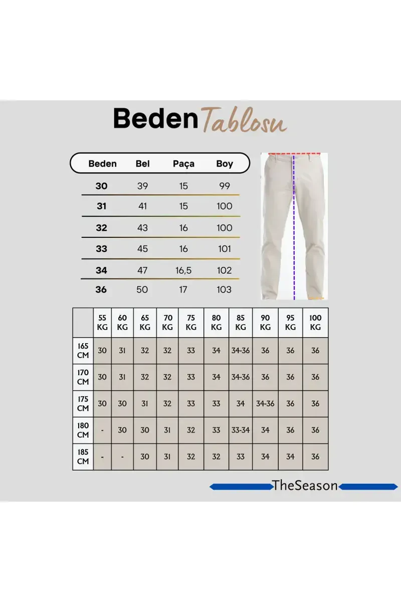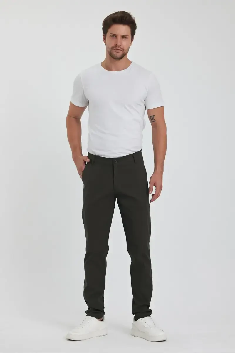 Men's Khaki Gabardine Cotton Slim Fit Stretch Chino Pants are among the indispensable parts of the modern man's wardrobe, combining elegance and comfort. It offers long-lasting use with its high-quality gabardine fabric and meticulous workmanship, while creating a stylish silhouette that fits the body with its slim fit cut. The khaki color, which can adapt to all kinds of environments, makes the trousers ideal for both daily use and more special occasions. Thanks to its flexible structure, it does not restrict your freedom of movement and allows you to feel comfortable all day long.Ürün AçıklamasıMen's Khaki Gabardine Cotton Slim Fit Stretch Chino Pants are the perfect option for the stylish and comfortable look of the modern man. These pants are made of high-quality gabardine fabric and stand out with their durability. Thanks to its cotton structure, it allows your skin to breathe and offers a comfortable use all day long. The slim fit cut creates a stylish silhouette that wraps around your body, while the flexible fabric does not restrict your freedom of movement. The khaki color makes the trousers versatile and easily compatible with different combinations. You can combine it with a t-shirt and sneakers for everyday use, or you can easily use it with a shirt and jacket for a more formal look. It allows you to look stylish and well-groomed in business life, social events or weekend trips. The details of the trousers include useful pockets and durable stitching. These features ensure that the trousers are both functional and aesthetically pleasing. In addition, its easy-to-iron structure saves you time and helps you achieve a perfect look at all times. Men's Khaki Gabardine Cotton Slim Fit Stretch Chino Pants are an ideal choice for men who do not want to compromise on style and prioritize comfort. These trousers, which will be an indispensable part of your wardrobe, will always offer you a stylish and comfortable look. It is a product that you can enjoy using for many years with its high-quality material, meticulous workmanship and modern design. Thanks to its wearable structure in every season, it stands out as a piece that will complement your style in every period of the year. Combining classic and modern lines, these trousers will help you reflect your style and feel good. The timeless elegance of the khaki color always keeps the trousers fashionable and trendy. You can easily combine it with other pieces in your closet to create different styles. These trousers are not just a piece of clothing, but also a style statement.Ürün Özellikleri* High quality gabardine fabric* 100% Cotton structure* Slim fit* Flexible fabric* Versatile khaki color* Useful pockets* Durable stitching* Easy to iron* Wearable in all seasons* Modern designEk BilgilerThe size on the model is 32. To ensure the longevity of our product, please follow the washing instructions on the label. Wash with similar colors to reduce the risk of color fading and deformation. Avoid using bleach. Iron at low temperature. Dry cleaning can be done.