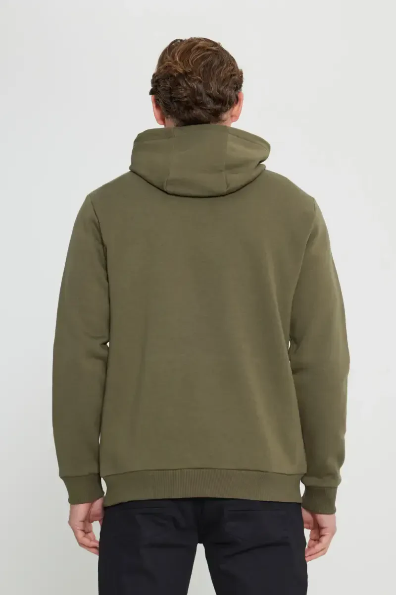 The Men's Khaki Standard Fit Regular Fit Fleece-Lined 3-Thread Hooded Kangaroo Pocket Cotton Sweatshirt, produced with Altınyıldız Classics quality, is designed to keep you stylish in cold weather and offer you superior comfort. This sweatshirt promises long-lasting use thanks to the softness of cotton fabric and the durability of polyester. Its fleece-lined structure protects you from the cold by trapping your body heat, while its 3-thread technology makes the fabric thicker and more durable. The standard fit cut fits comfortably on your body and does not restrict your freedom of movement. Ideal for daily use, this sweatshirt offers style and comfort together. Its khaki color can be easily combined with other pieces in your wardrobe and adapts to any environment. The hooded design protects your head from the cold, while the kangaroo pocket detail offers both a stylish look and a practical area where you can warm your hands or carry small items. A must-have piece of the winter collection, this sweatshirt is an option that you can easily use in both sports and daily combinations. This product, offered with Altınyıldız Classics assurance, is produced with quality materials and workmanship. You can use it like the first day for many years by following the machine washing instructions. This sweatshirt, which is an ideal choice for men looking for style, comfort and quality together, will be one of the indispensable pieces of your wardrobe.