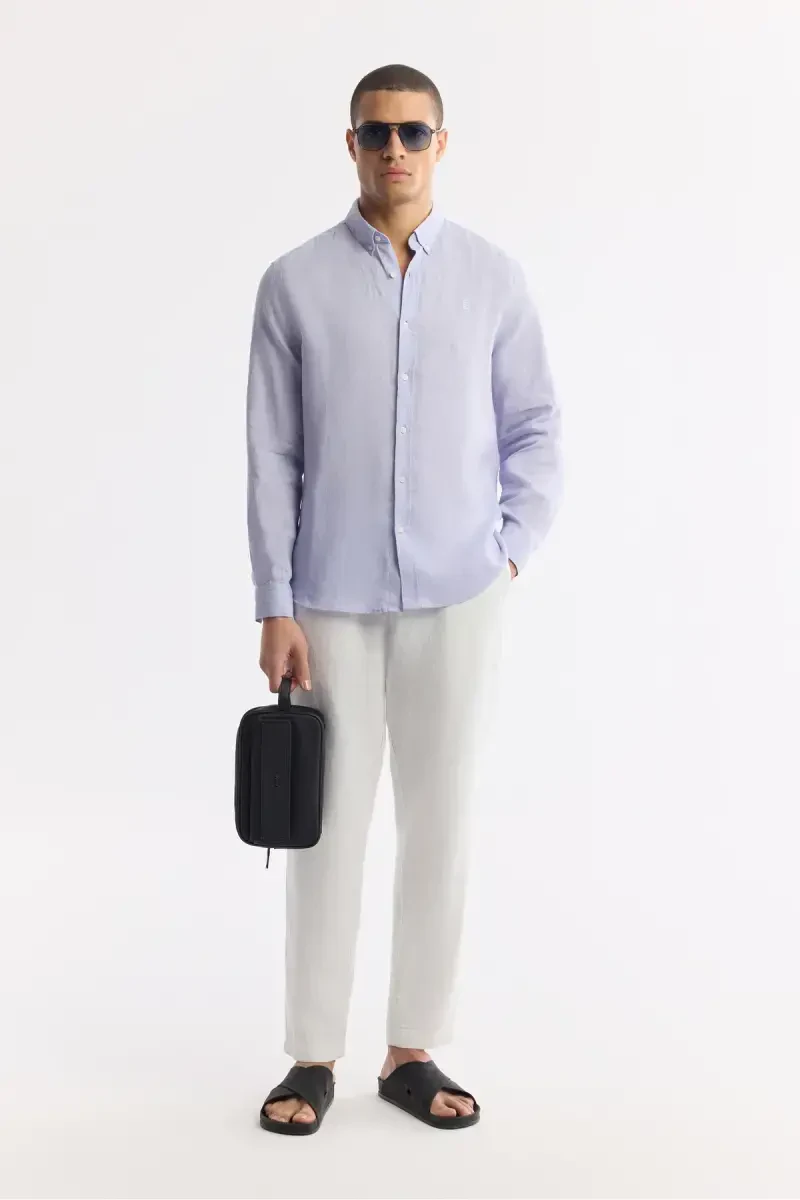 Combining style and comfort, this men's lavender shirt is made from 100% linen fabric. Natural linen fabric provides you with all-day comfort with its breathability and soft texture. With its button-down collar and comfortable fit, this shirt will adapt to any style and will keep you cool and stylish in the summer months.