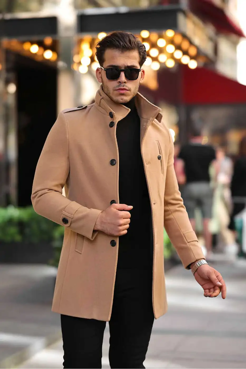 Coats, an essential part of men's wardrobes, are the ideal outerwear pieces that offer both style and warmth on cold winter days. This season, meet our specially designed slim fit long wool coat, perfect for showcasing your style and staying warm.