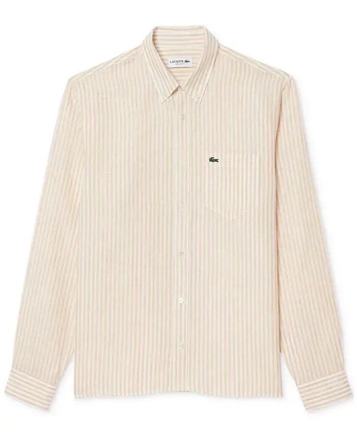 male, long-sleeved, striped, shirt, linen, relaxed, button-down, casual, clothing, regular fit