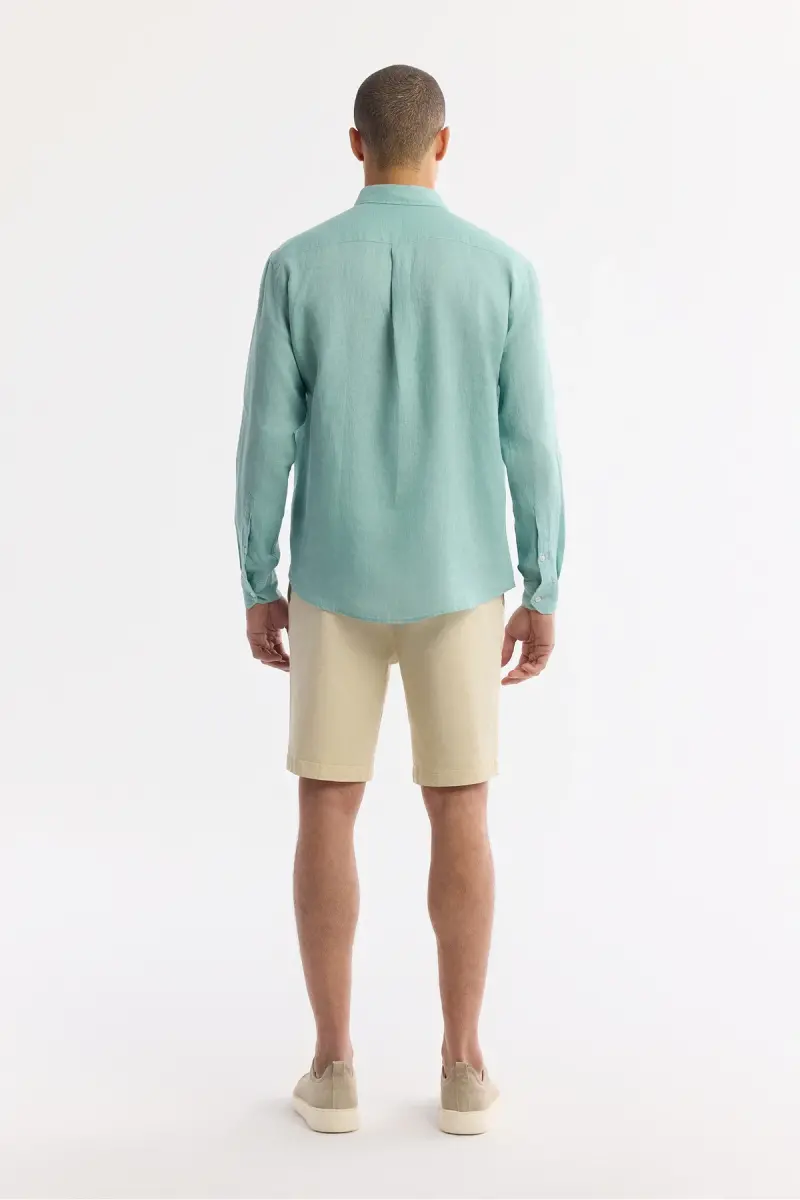 The perfect choice for staying stylish and cool in the summer heat, the Men's Mint Green Shirt is made from 100% linen fabric. Its natural texture and breathable structure offer comfort all day long, while the button-down collar and relaxed fit adapt to any style.