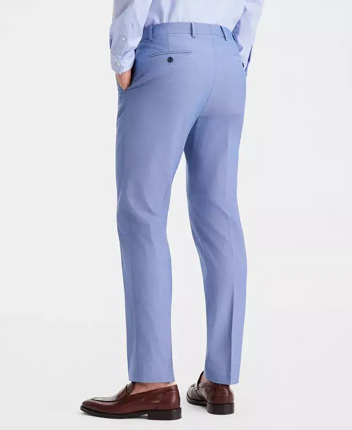 A modern tailored profile and a chambray pattern gives these Tommy Hilfiger stretch suit separate pants the perfect look for both professional and dressy occasions. Modern fit pants sit at the waist; trim fit through the hips and thighs with a slightly tapered leg opening Flat front; finished hem; no cuff Matching jacket sold separately Zip fly with button-and-hook closure; belt loops Two front slant pockets; button-through welt pockets at back Unlined; creased Cotton/spandex Dry clean Imported
