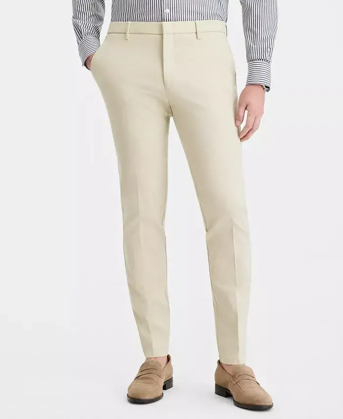 Maximize your professional style and comfort while keeping your look crisp with the modern tailoring and wrinkle-resistant TH Flex stretch design of these dress pants from Tommy Hilfiger. Slim trousers with a tapered leg Flat front, finished hem; no cuff Wrinkle-resistant Zip fly with button-and-hook closure; belt loops Two side slit pockets; two back button-through welt pockets Super-stretch comfort waistband Unlined Rayon/nylon/spandex Machine washable Imported