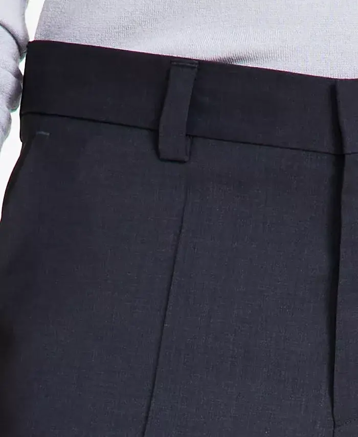 Perfect your formal ensemble with these classic black modern-fit suit pants from HUGO by Hugo Boss, made from virgin wool and ready to max out on elegance at a moment's notice. Modern fit; straight leg Flat front; creased Zip fly with hook and bar closure; belt loops Two side hand pockets; two back pockets Finished hem Partially lined Shell: wool; lining: viscose Dry clean Imported