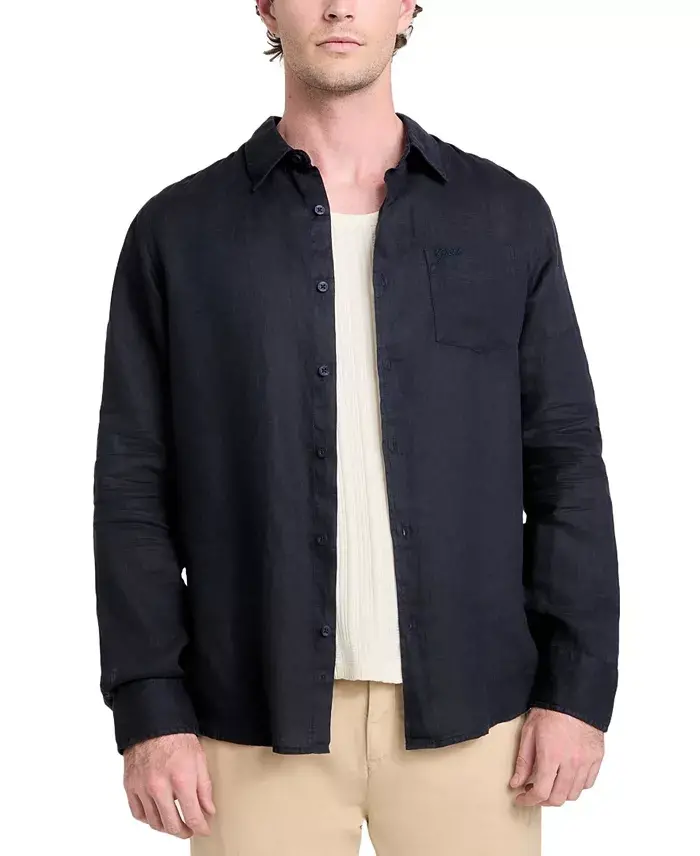 Introducing the Men's Napa Relaxed-Fit Textured Button-Down Shirt-Smart Blue Multi. This stylish and comfortable shirt is a must-have for your wardrobe. Its relaxed fit provides comfort all day long, while its stylish design adapts to any environment. Ideal for layering, this shirt allows you to reflect your style with different combinations. You can achieve different looks by wearing it alone or over a t-shirt. As part of the Napa collection, this shirt reflects GUESS's understanding of quality and style. The textured fabric adds a different dimension to the shirt, while the smart blue multi-color pattern offers a vibrant and modern feel. The embroidered GUESS logo on the left chest emphasizes the brand's prestige. The Napa shirt is a perfect choice for both everyday use and special occasions. It completes your elegance in business life, weekend trips, or evening dinners. The buttoned cuffs and spread collar add a classic touch to the shirt, while the relaxed fit offers a modern look. The fabric blend of cotton, viscose, and elastane makes it both durable and comfortable. By adding the Napa shirt to your wardrobe, you can take your style to the next level. This shirt is not only stylish but also practical. The patch pocket on the left chest allows you to carry small items with you. The button closure allows you to easily put on and take off the shirt, while the long sleeves keep you warm in cold weather. Its machine washable feature makes it very easy to care for. The Men's Napa Relaxed-Fit Textured Button-Down Shirt-Smart Blue Multi is a perfect choice that offers comfort, style, and quality together. This shirt, which should be in every man's wardrobe, is the easiest way to reflect your style.