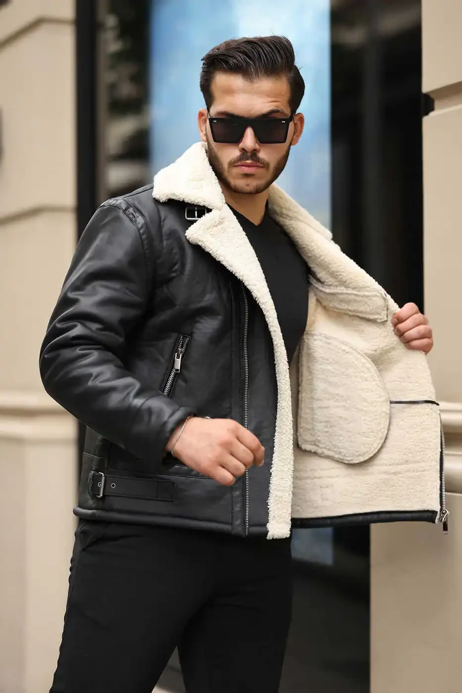 You can easily wear our men's napa leather cross zipper full fur lined slim fit jacket in everyday life, on special occasions, and in cold weather. This product, which is an ideal choice for men looking for a stylish and warm jacket, will keep you warm and complete your style at the same time.