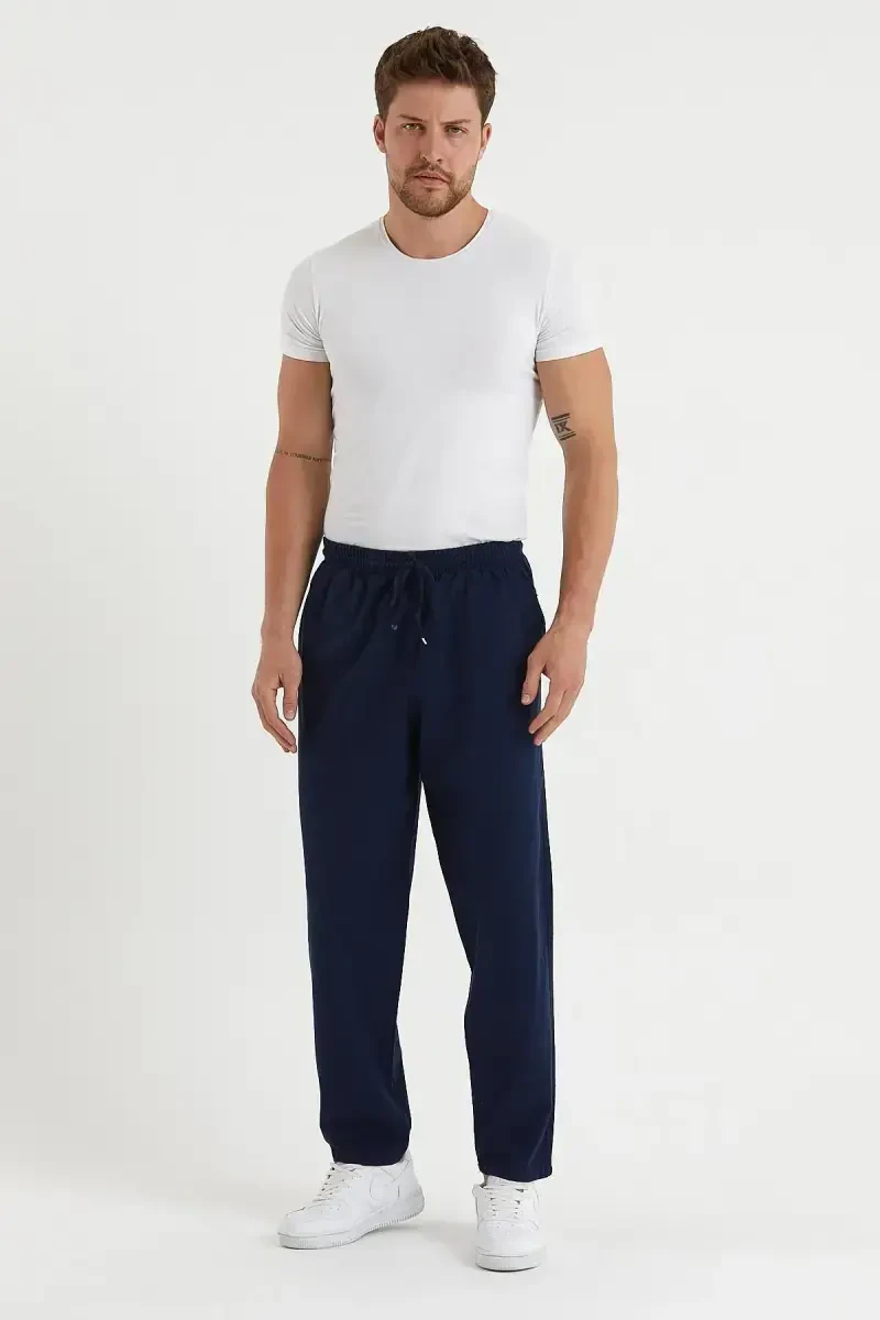 Men's Navy Blue Basic Relaxed Fit Jogger Pants, offering comfort and style in one, will become indispensable in your everyday wear. This jogger pant, standing out with its modern cut and comfortable fabric, is a candidate to be one of the most beloved pieces in your wardrobe. Whether you're relaxing at home, meeting up with friends, or doing a light workout, it will accompany you in every situation.**Product Description**Men's Navy Blue Basic Relaxed Fit Jogger Pants are designed to meet the style and comfort expectations of the modern man. Thanks to its relaxed fit cut, it offers comfortable use without restricting your freedom of movement. The navy blue color complements any combination, highlighting your elegance. High-quality cotton fabric provides breathability and softness all day long. The adjustable drawstring elastic waistband ensures the pants fit perfectly to your waist, providing all-day comfort. Two side pockets allow you to safely carry your phone, wallet, or keys. Ribbed details on the cuffs complete the sporty look of the pants and create a modern silhouette. Thanks to its basic design, it can be easily combined with different upper garments such as t-shirts, sweatshirts, shirts, and sports jackets. Whether you get a casual look with sneakers or create a more stylish style with boots, these jogger pants will accompany you in every situation. Designed for long-lasting use, this pant retains its original appearance for a long time when cared for according to the washing instructions. Thanks to the durability of its fabric, it is resistant to frequent use and washing. Men's Navy Blue Basic Relaxed Fit Jogger Pants stand out not only with their comfort but also with their stylish design. Whether you are in your daily activities, travels or doing sports, it always makes you look stylish. These jogger pants, which will be one of the basic pieces of your wardrobe, are an ideal choice for men who want to be both comfortable and stylish. Thanks to its flexible structure, it does not restrict your movements and allows you to move freely throughout the day. The quality of its fabric minimizes the problem of sweating, keeping you fresh all day long. These jogger pants, which you can easily use both indoors and outdoors, are suitable for all seasons. You can combine it with a light t-shirt in summer to get a cool and comfortable look, and you can create a warm and stylish style by combining it with a thick sweater and coat in winter. In short, Men's Navy Blue Basic Relaxed Fit Jogger Pants are an excellent option that offers comfort, style and versatility in one.**Product Features*** Relaxed fit cut* High-quality cotton fabric* Adjustable drawstring elastic waistband* Two side pockets* Ribbed details on the cuffs* Navy blue color* Basic design* Long-lasting use* Breathable fabric* Easy combinability**Additional Information**The size on the model is M. The fabric content of the product is 100% cotton. It is recommended to wash according to the washing instructions. The colors of the product may vary due to light differences in studio shots.